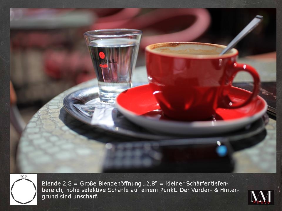 z.B. Blende 2.8 = punktuelle Schärfe / z.B. Blende 11 = größerer Schärfebereich