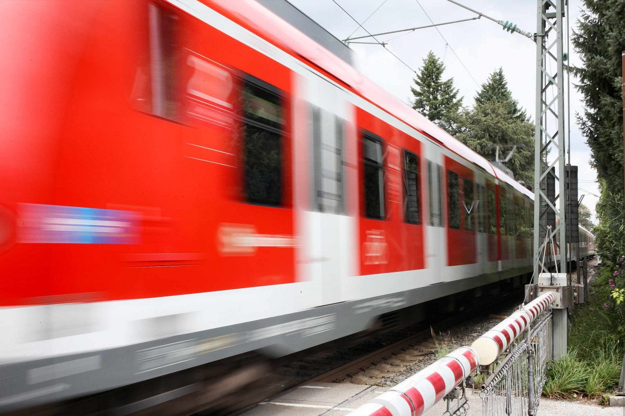 Fotografiert „frei Hand“ mit 1/60Sek. mit einer 50mm Brennweite bei Blende 16. Durch die kleine Blende ist die Umgebung der Bahn von vorne bis hinten scharf. Aufgrund der schnellen Bahn und relativ langen Verschlusszeit ist die Bahn vorne unscharf.