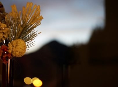 Schärfe auf das Wasserglas focusiert bei Blende 2.8. Der Vorder- & Hintergrund ist unscharf.
